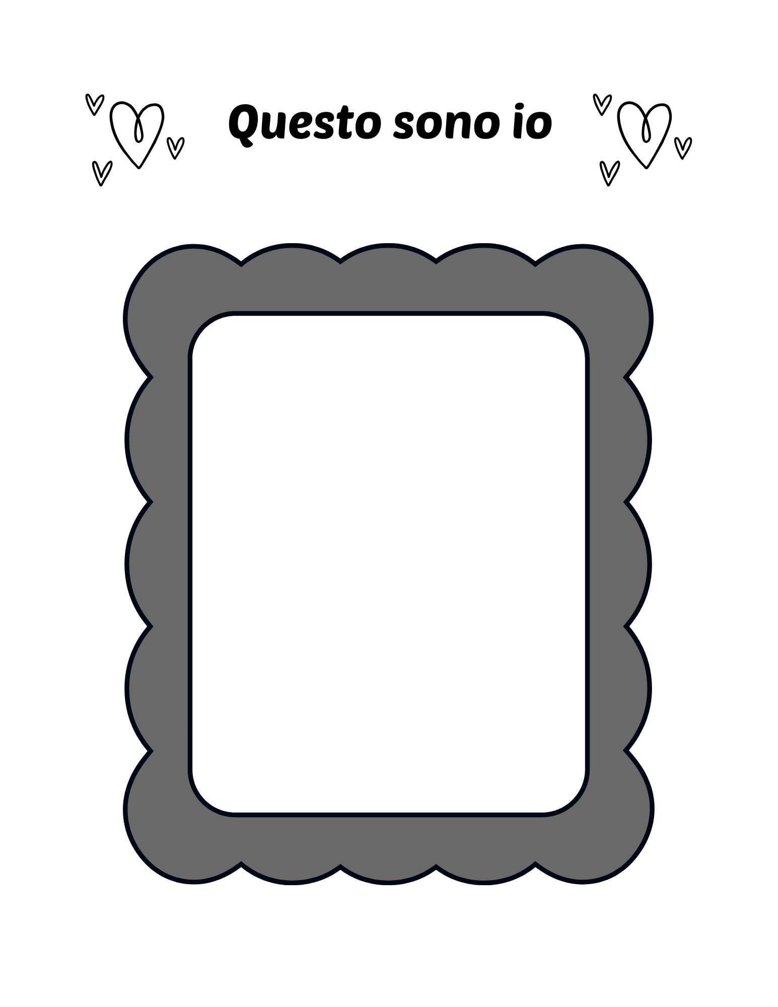 Il diario copre temi come l'identità personale ("Questo sono io"), le preferenze ("Il mio cibo preferito", "Il mio animale preferito") e le abitudini quotidiane. Include sezioni per riflettere su "Tre cose per cui sono grato oggi" e per descrivere "La cosa migliore di oggi".