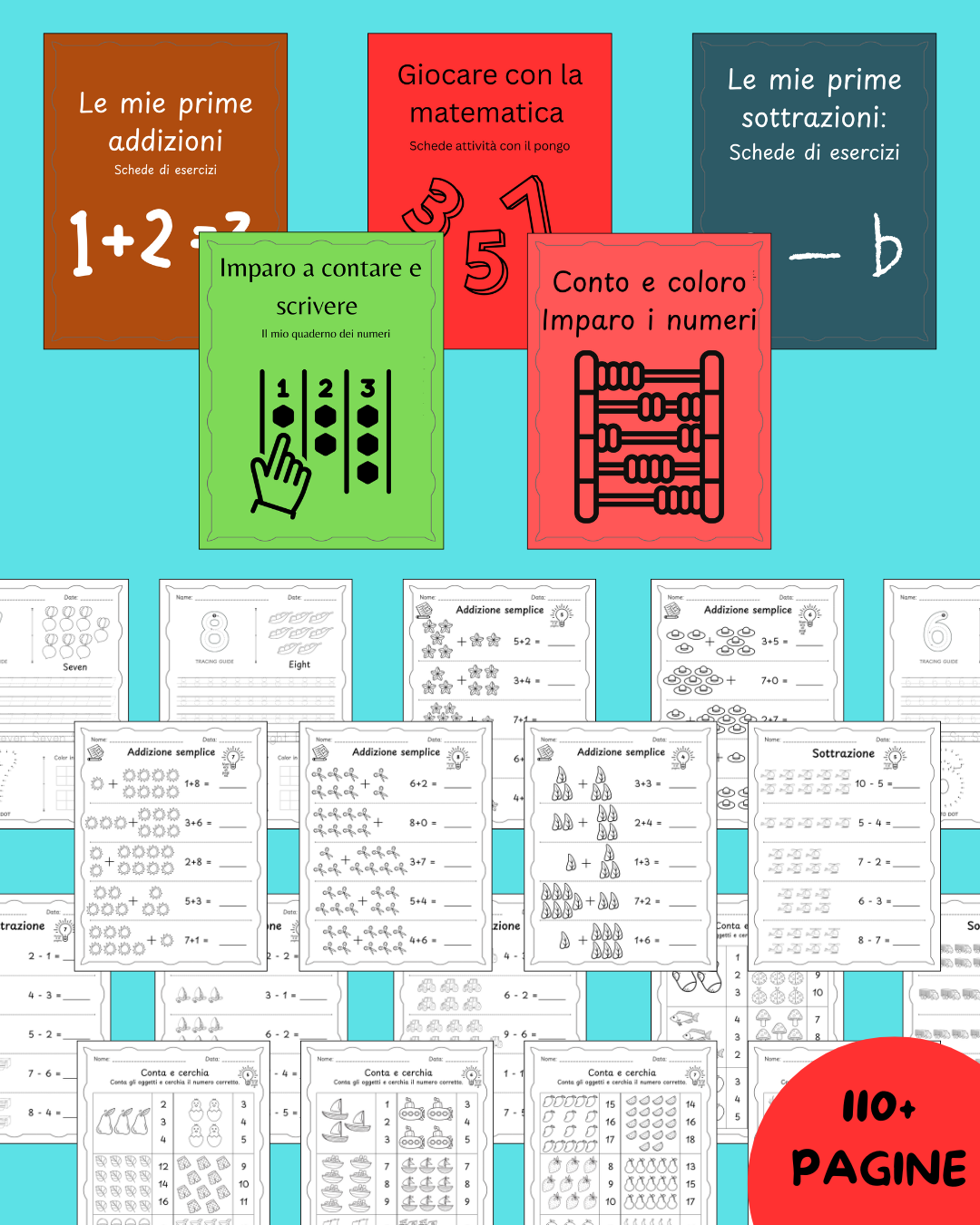 Questo bundle è stato creato per bambini della scuola materna ed elementare (dai 3 agli 8 anni). Ogni quaderno contiene attività di difficoltà variabile per adattarsi alle diverse fasi di crescita e apprendimento