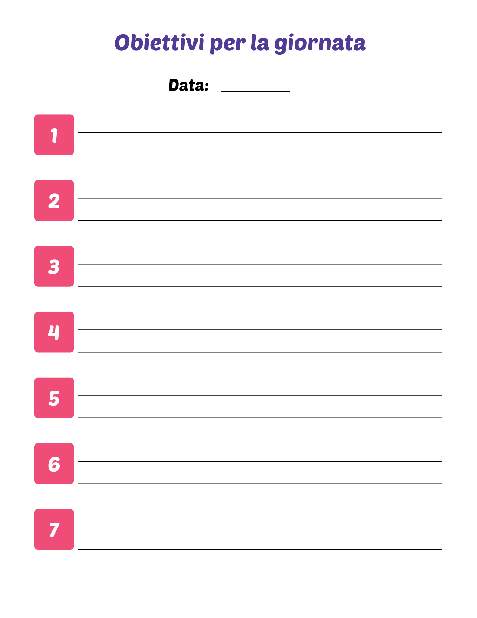 - Sezione "Obiettivi per la Giornata"